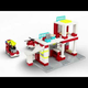 - Valósághű részletek – A sokoldalú készlet tartalmaz egy sürgősségi póznát, egy lengőajtót, ami kinyílik, ahogy az autó áthalad rajta, egy tűzelemet és eszközöket annak eloltásához, valamint ágyat, széket, asztalt, térképet, pizzát és sok mást is