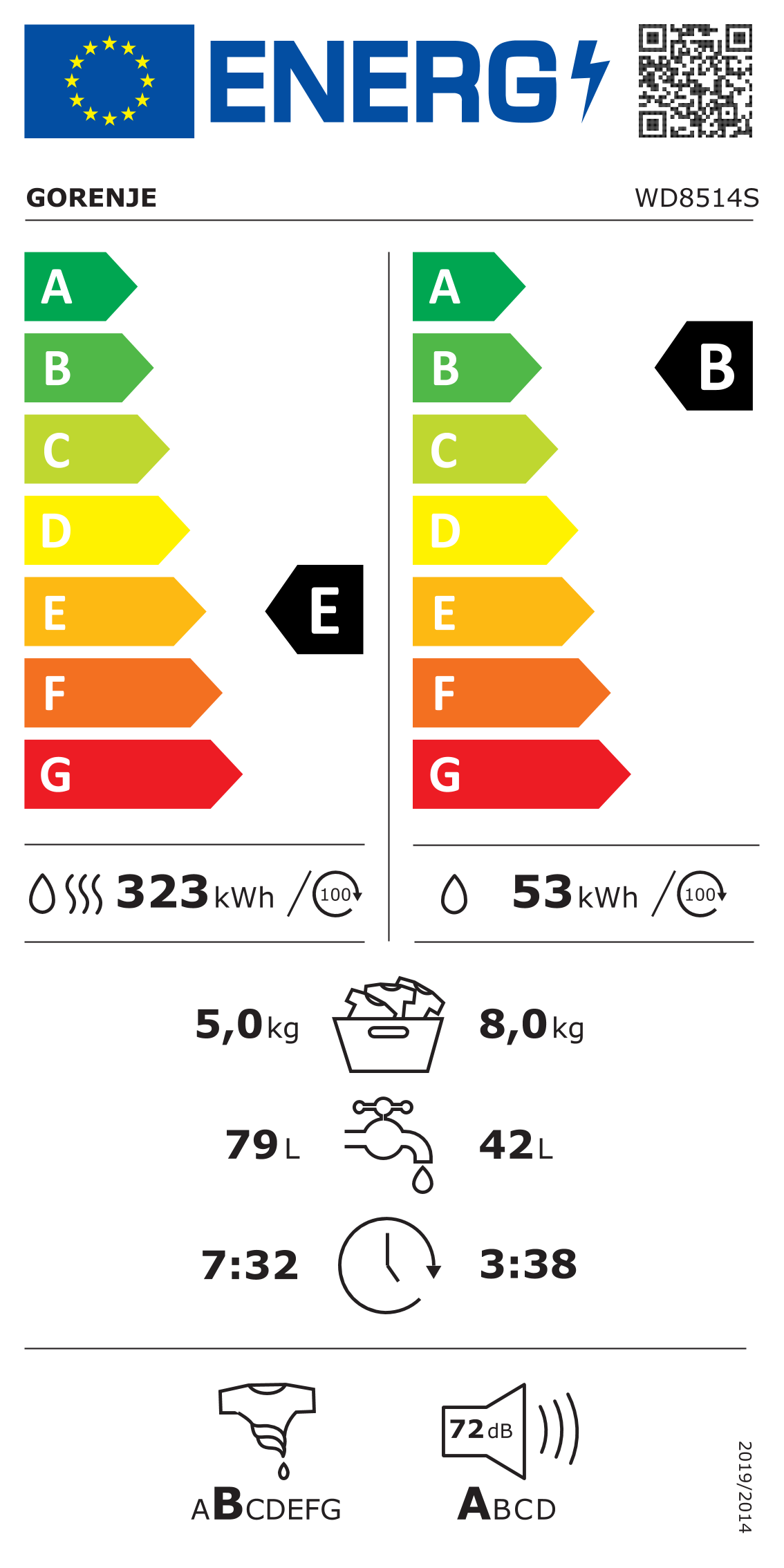 Gorenje WD8514S mosó-szárítógép, 8kg/1400f, fehér