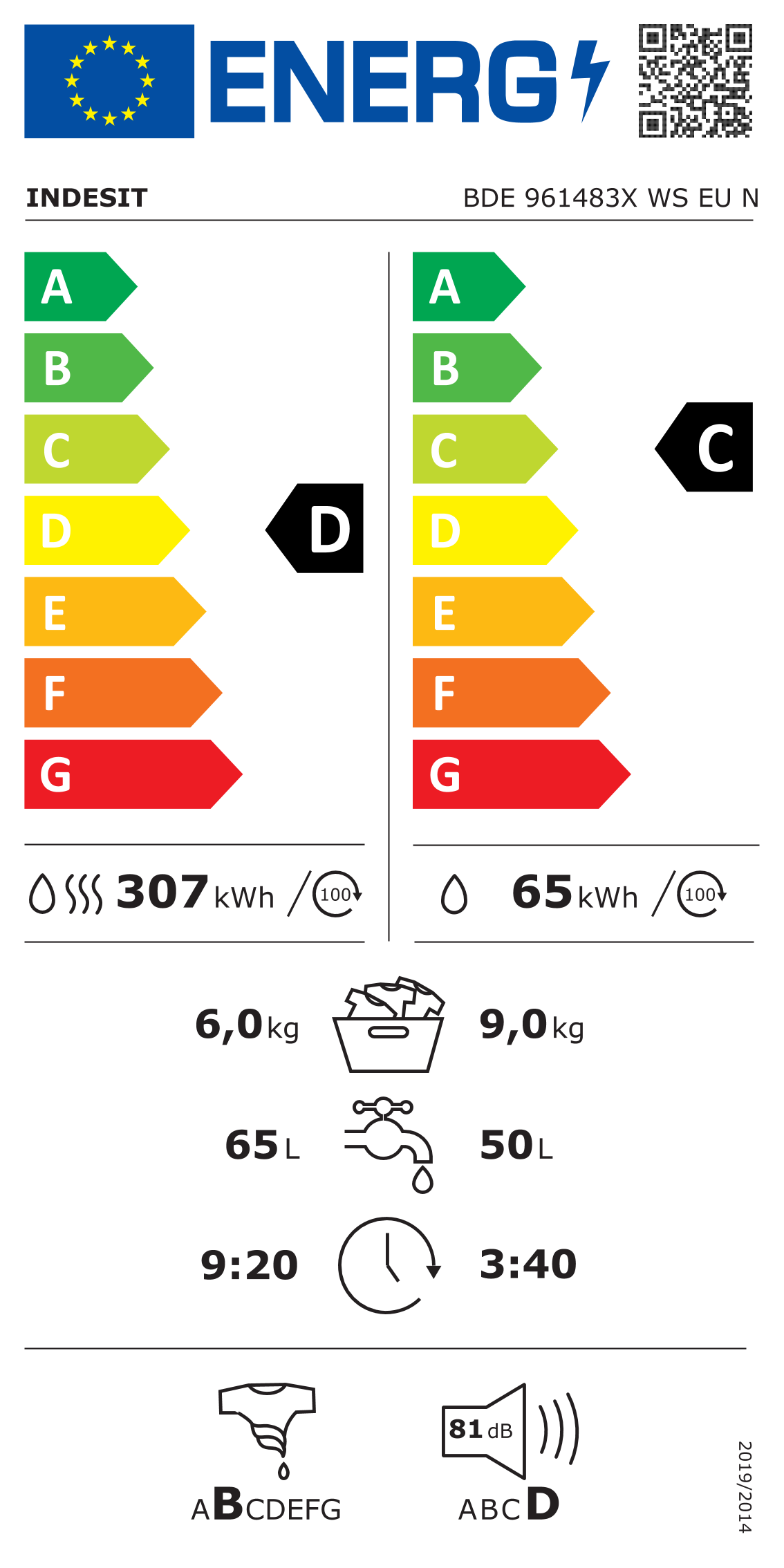 - Energiaosztály: 65 kWh / 100 ciklus
