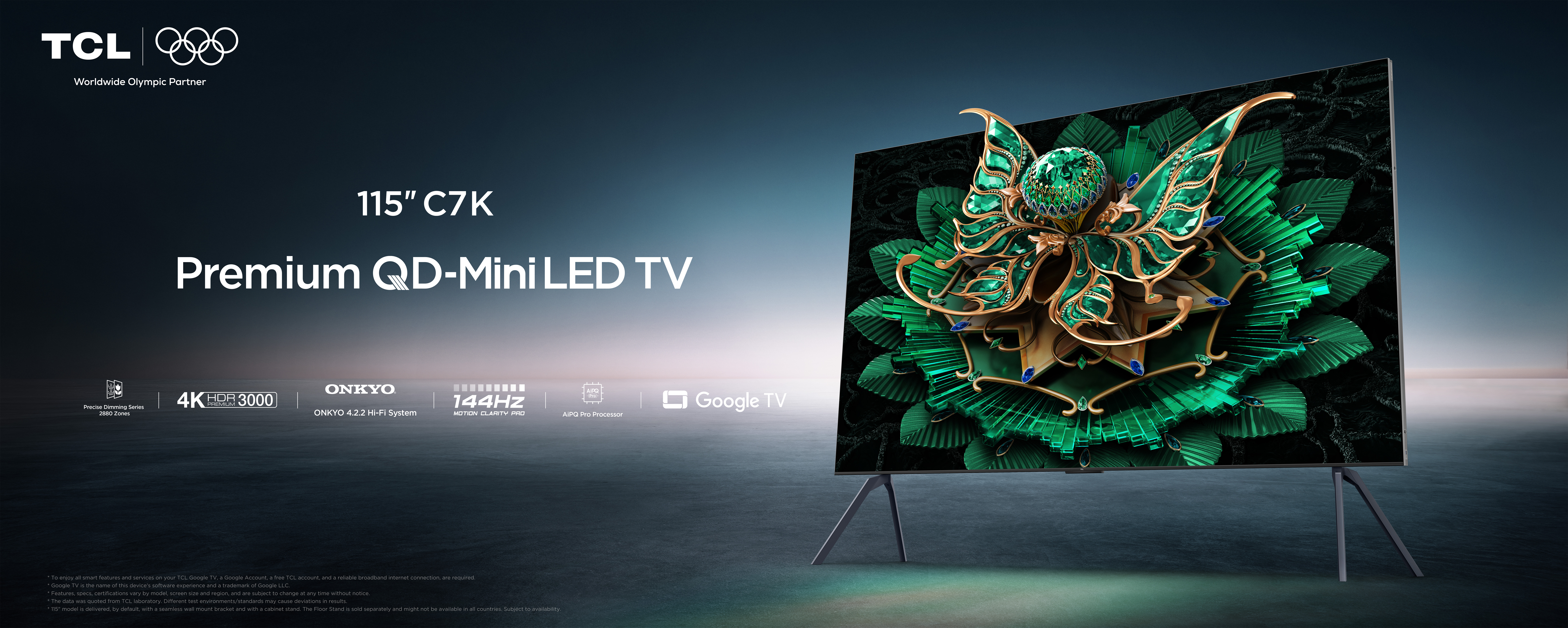 A TCL Premium C7K QD-Mini LED C7K QD-Mini akár 2880 fényerőzónával* egy olyan vizuális remekmű, amely lenyűgözően élénk képeket mutat élethű színekkel és nagyon magas kontrasztaránnyal. Magasabb csúcsfényerővel, szélesebb színskálával, nagyobb képernyőmérettel és hosszabb élettartammal is rendelkezik, így vezető kijelzőtechnológiának számít.