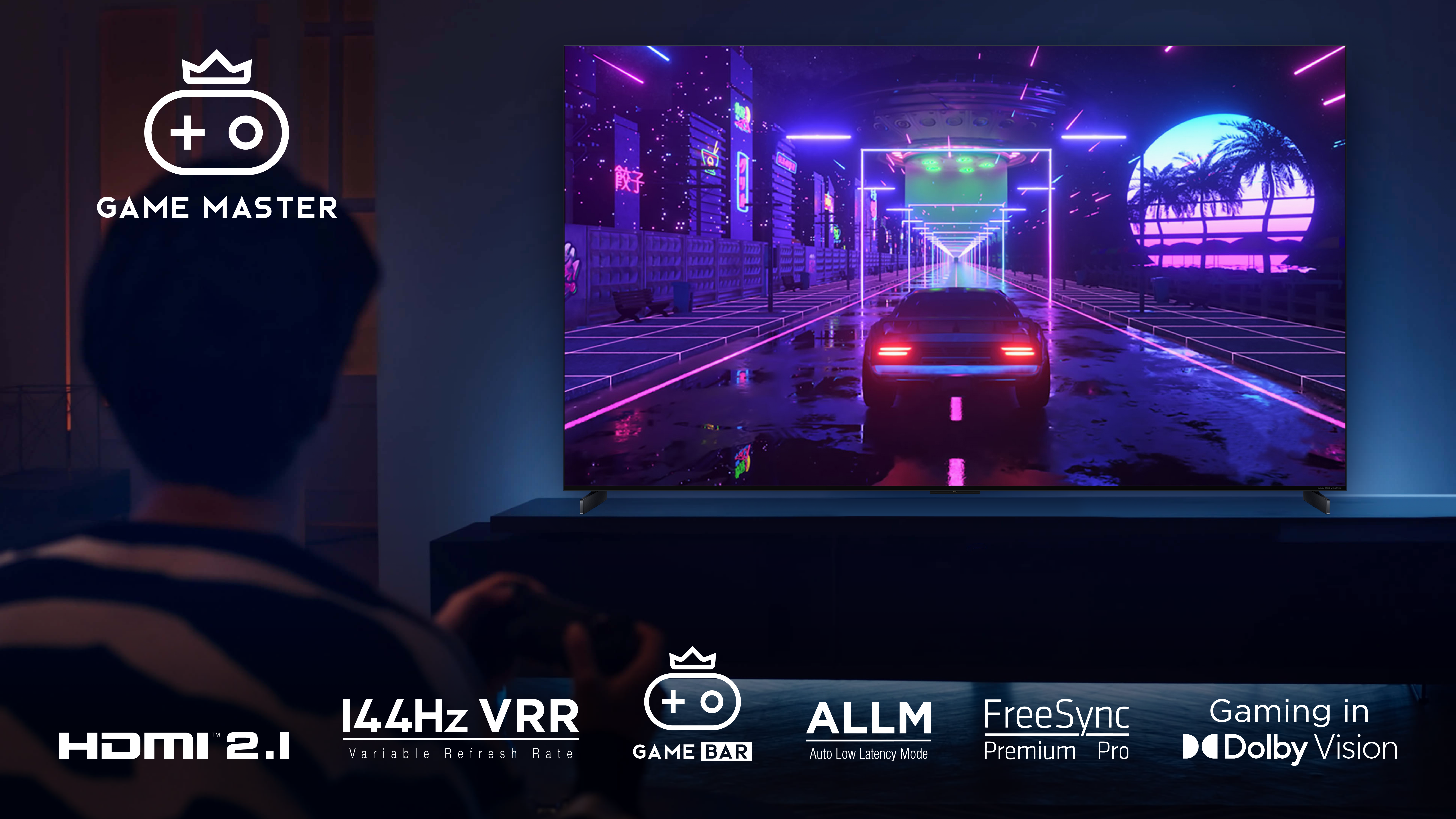 A játékosok számára ugyanolyan fontos, hogy a tévé gyorsan reagáljon, mint a sima és tiszta kép. A HDMI 2.1, ALLM, 144Hz VRR és 120Hz VRR támogatással, a játékra alkalmas sávval, a FreeSync Premium Pro-val automatikusan a legsimább akciót, a legalacsonyabb késleltetést és a legjobb képbeállításokat élvezheti a játékhoz.